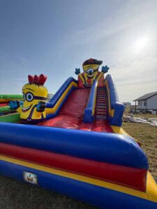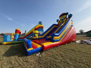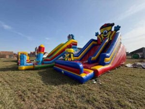 Wymiary 10,5m długa 6m szeroka oraz 7,5m wysoka. Zjeżdżalnia w rozmiarze XXL idealna na piknik lub festyn.